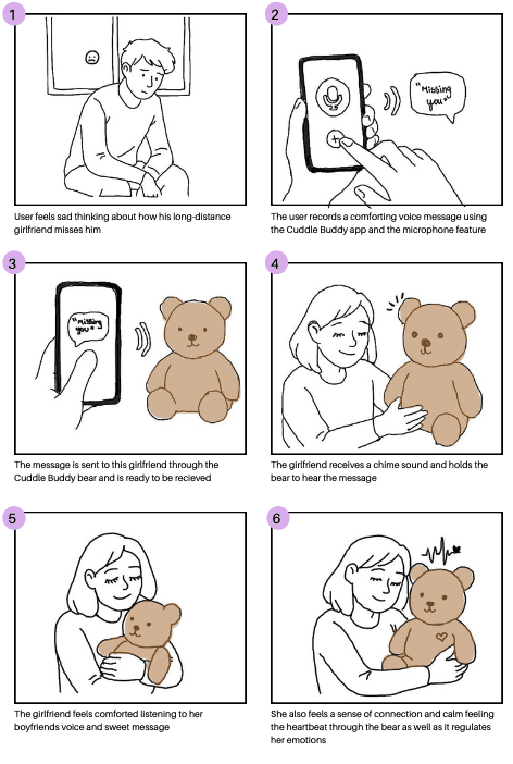 A soft, huggable teddy bear that delivers a solution for loneliness through heartbeat haptics