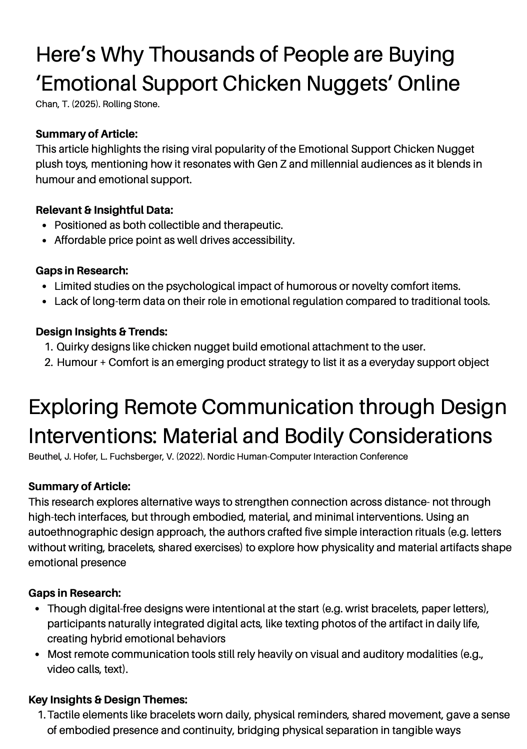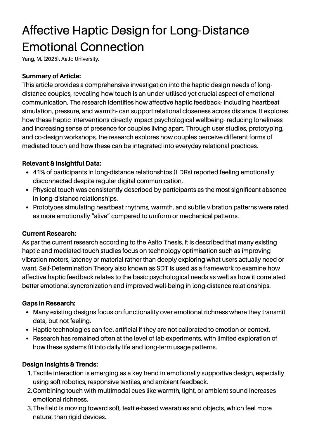 Research into affective haptics, comfort objects, and emotional regulation revealed key insights that shaped the direction of the design: