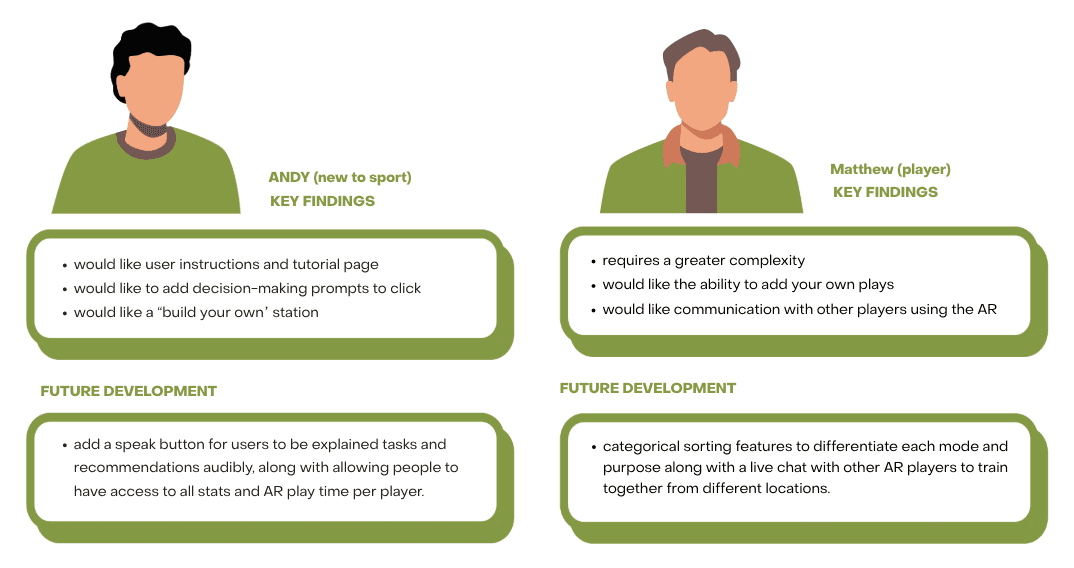 User testing was conducted with both a recreational player and an elite athlete to evaluate usability and perceived training value.