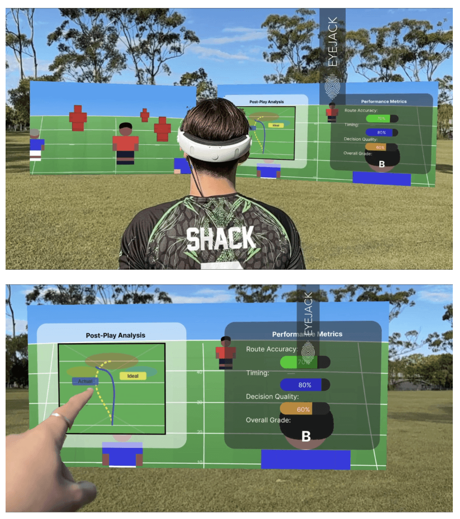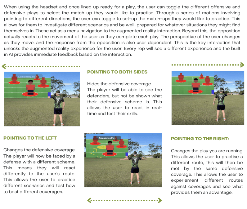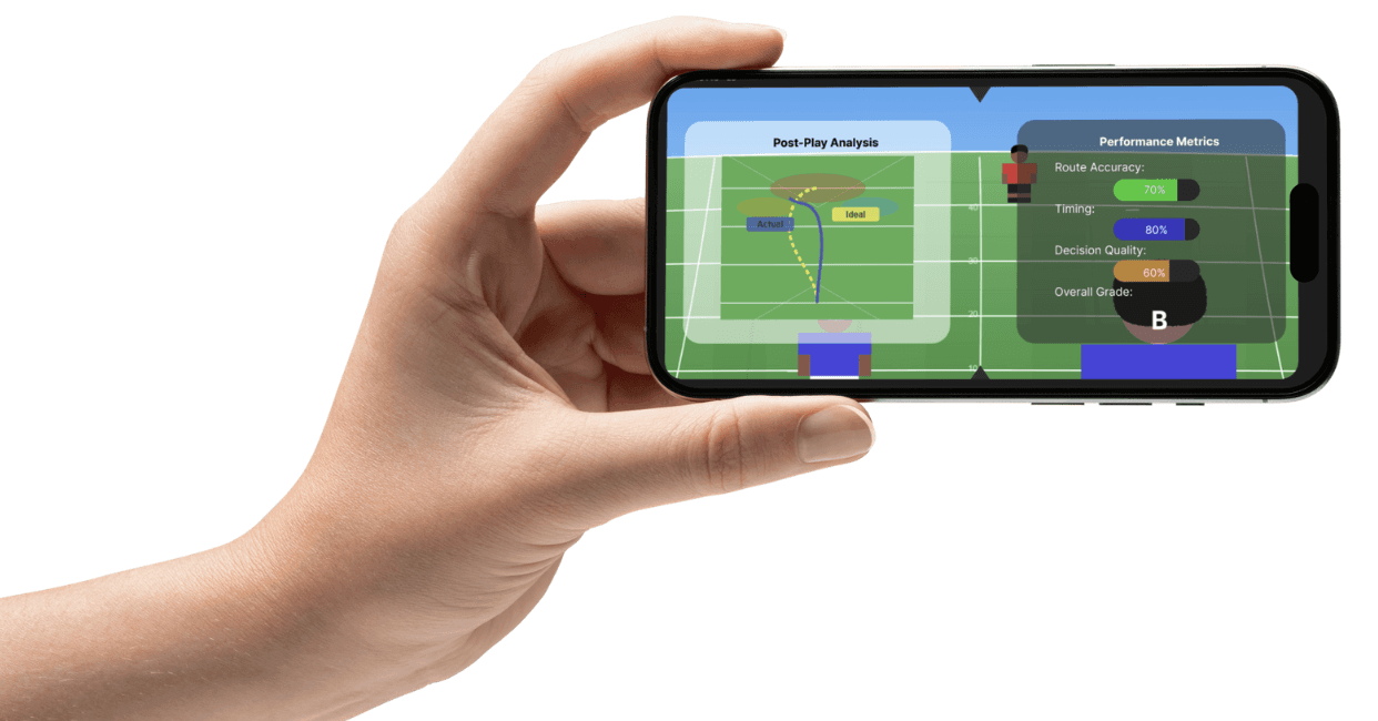 An AR training system that overlays routes, defensive schemes, and real-time feedback directly onto the field.