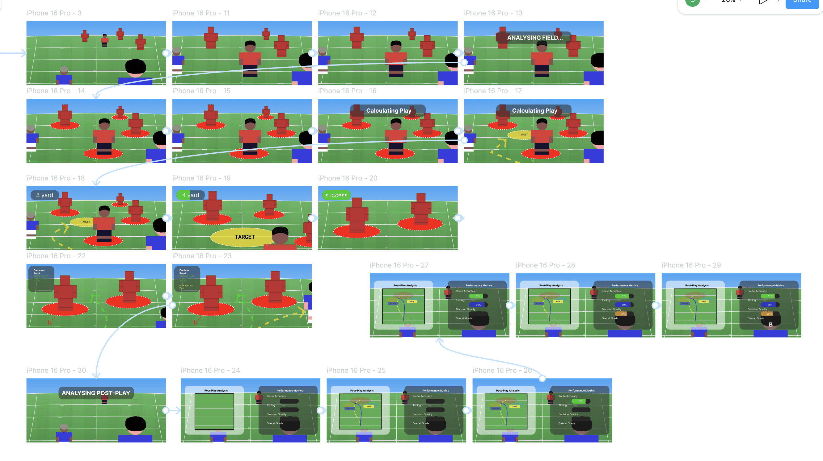 Working on FlagVision strengthened my ability to design within speculative and technically constrained contexts while still maintaining clarity of intent. Because the project explored augmented reality in a sports training environment, a key challenge was balancing ambition with feasibility- clearly communicating how the system would function without being able to fully implement the technology. This pushed me to think more carefully about interaction logic, spatial information hierarchy, and how athletes would engage with the system while in motion, rather than relying on interface-heavy solutions.